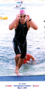 The inaugural St. Croix Triathlon was in 1988 and was originally a 1.2 mile swim / 34 mile bike / 7 mile run. Steve did this race in 1989 and 2001.